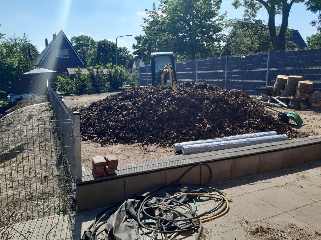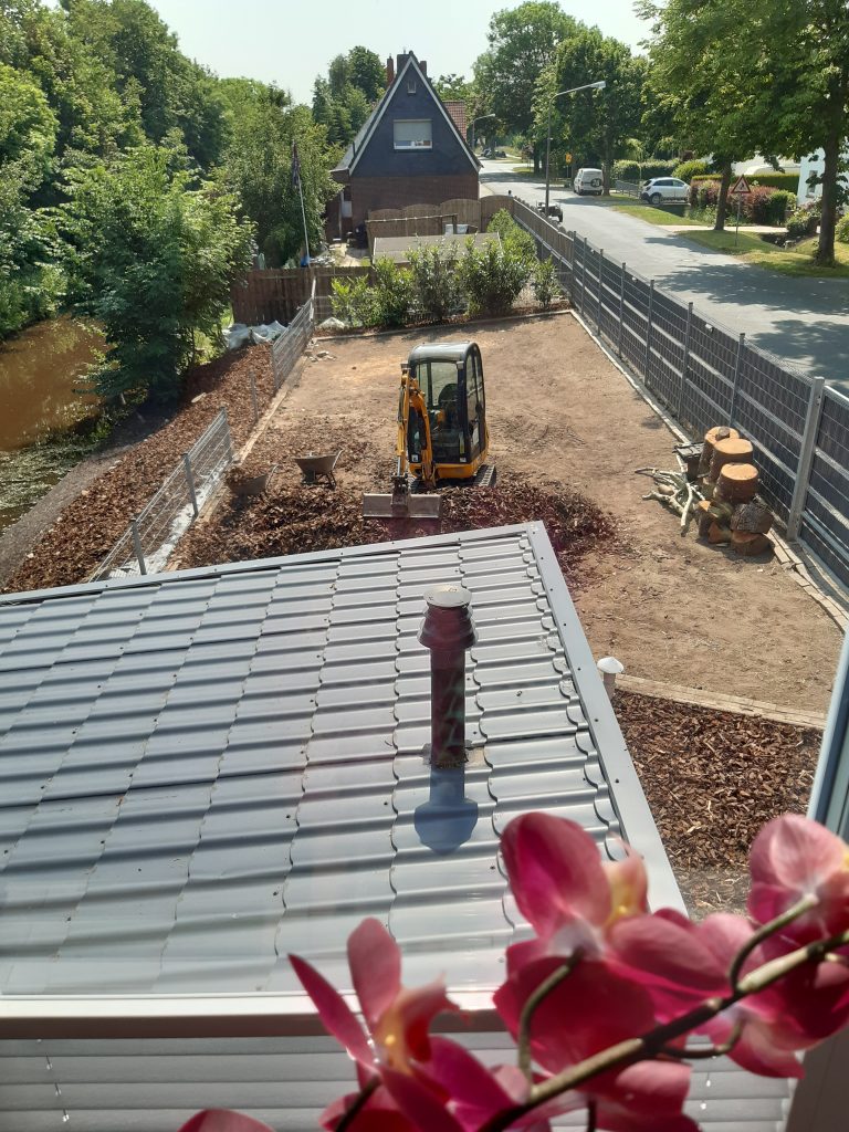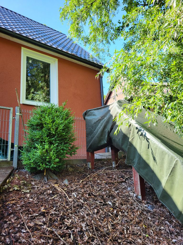 Alles bedeutet alles – auch im Garten ist nichts wie es war, da der Maulwurf hier recht aktiv ist, gab es noch ein Gitter für den Rasen und der Roboter kann recht pflegeleicht, nebst der zeitgesteuerten Beregnung seinen Job nun wieder recht entspannt verrichten, ein über die Jahre super gewachsener Obstgarten lädt zum Naschen ein.